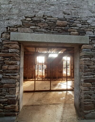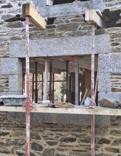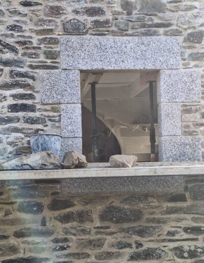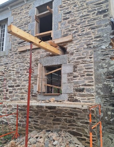 Création ou élargissement d’ouvertures (portes, fenêtres) sur murs anciens, avec linteaux ou arcs.